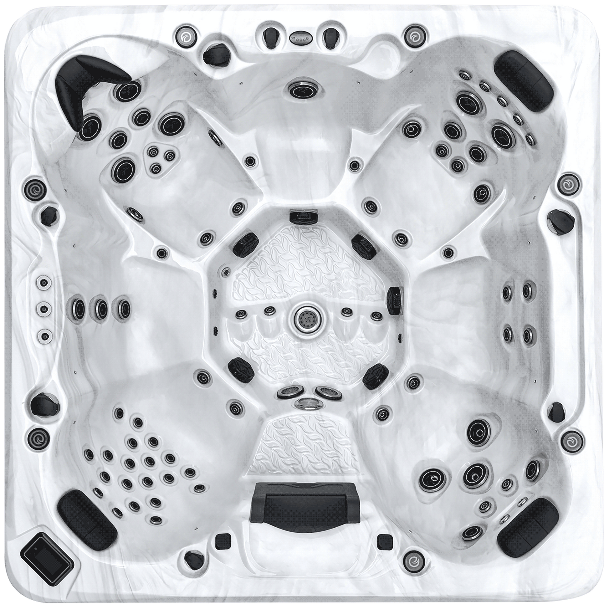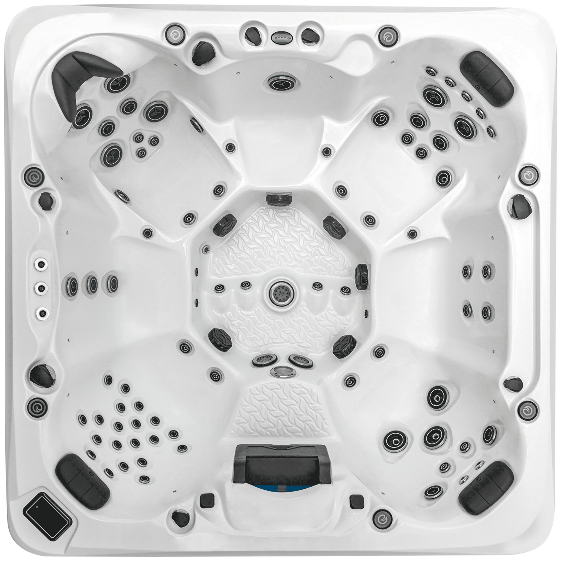 Spacious 91″x 91″, 90 85 jets , powerful, and versatile—the Mauna Kea is our flagship all-seater spa, built to handle serious hydrotherapy with flexibility and control. It features 85 strategically positioned Pro-Wave therapy jets, powered by 3 pumps, offering varied massage experiences across 7 open seats. The volcanic-style footwell includes 3 high-flow foot blasters for full-body relief and an added sense of depth and movement.