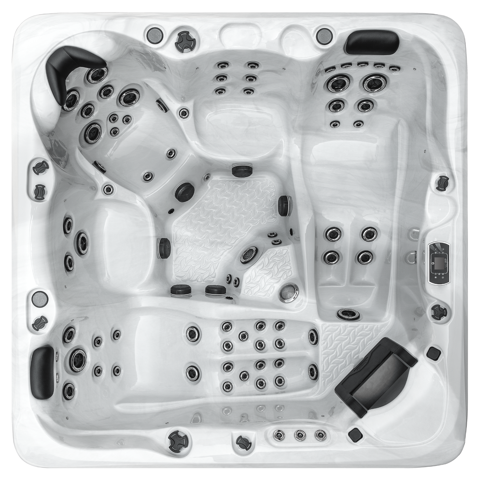 With two equal size large multi-jet loungers, a deep bucket therapy seat, targeted all over body massage, rigorous foot massage, stunningly bright multi-colour LED lighting and a double-step tiered entry just to name a few; showmanship has never felt so good.