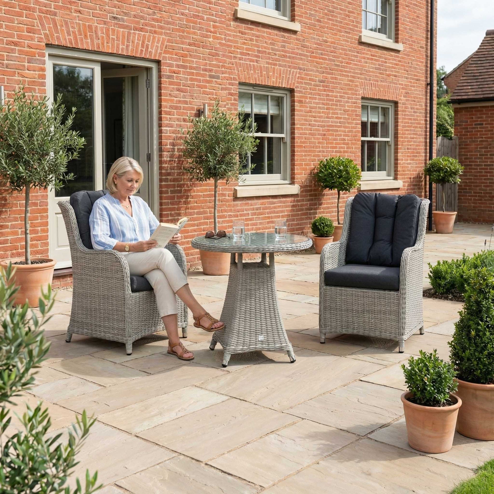 Introduce timeless elegance to your outdoor space with the Avery Collection, a sophisticated addition designed to elevate your garden's aesthetic. The Avery features a stunning half-round weave design, complemented by full-round weave detailing around the table and chairs, showcasing exceptional craftsmanship. Each chair is meticulously crafted with a 28mm weave wrapping around the framework and legs, creating a refined and cohesive look. The handcrafted back seat cushions are thoughtfully designed to gently hug and support you, ensuring ultimate comfort as you relax, dine, or enjoy the outdoors. The seats are intentionally designed with a larger size, offering luxurious space for you and your guests to sit back in style. To enhance the dining experience, the Avery collection boasts generously sized tables, providing ample room for meals, drinks, and meaningful conversations. With its versatile colourway's, the Avery Collection seamlessly fits into a wide range of garden styles, making it a perfect choice for those who value elegance, comfort, and functionality.
