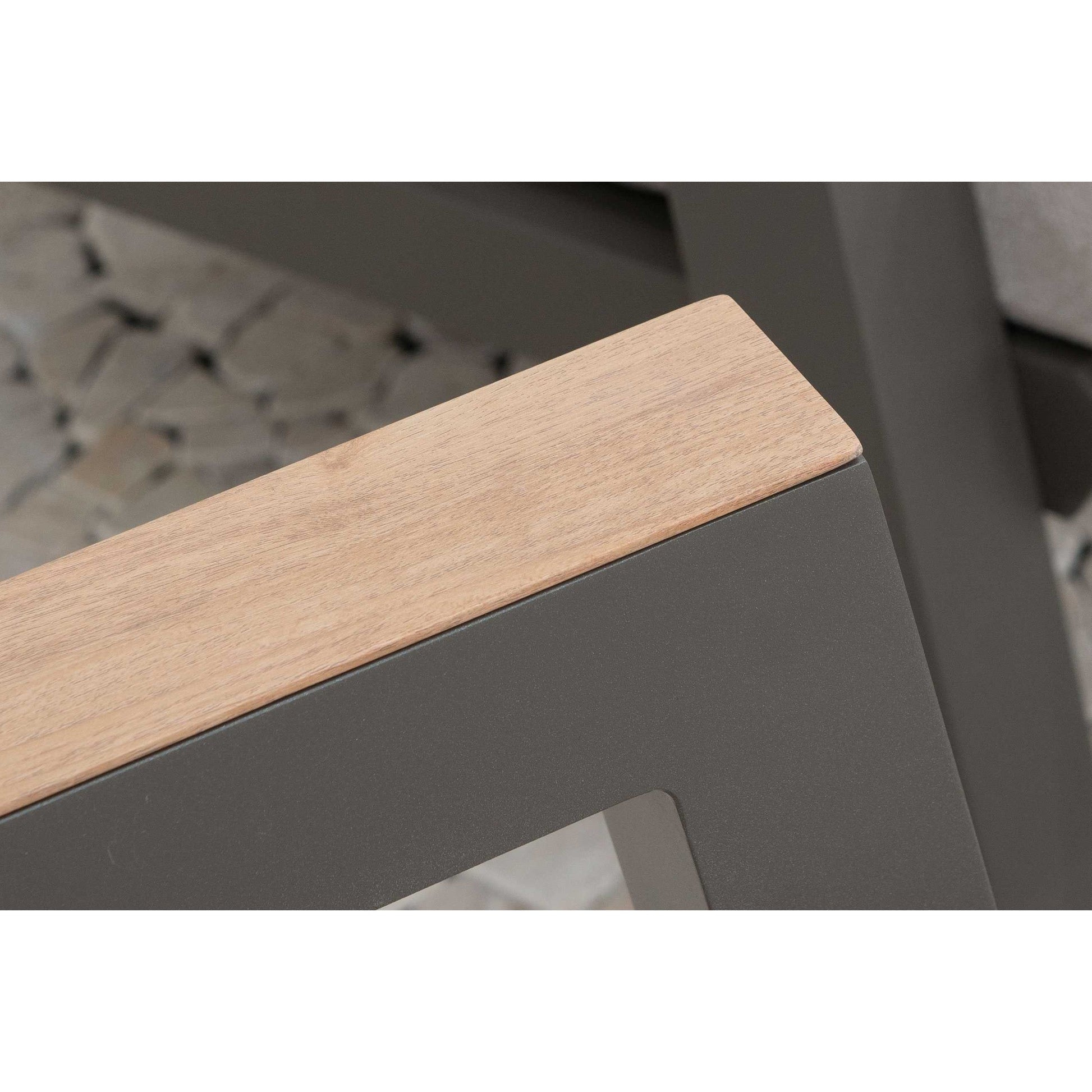 Enhance your outdoor space with the Hunter Collection, designed to bring contemporary elegance to any modern garden. The set features a stunning bronze-coloured powder-coated aluminium frame, accented with a delicate golden fleck in the paintwork, creating a truly eye-catching aesthetic that elevates your outdoor setting.The standout feature of the Hunter Collection is its innovative back cushions, which seamlessly slot over the framework. This unique design element not only enhances the set is sleek appearance but also ensures a comfortable and stylish seating experience. The cushion fabric is carefully selected to perfectly complement the warm tones of the frame. Adding both practicality and beauty, the set includes heat transfer accents on the arms of the chairs and tables. These accents provide the look of wood without the hassle, offering a rust-free, low-maintenance option for outdoor living. With its refined design and exceptional attention to detail, the Hunter Collection is the ultimate choice for those seeking to blend style, comfort, and modern functionality in their garden.