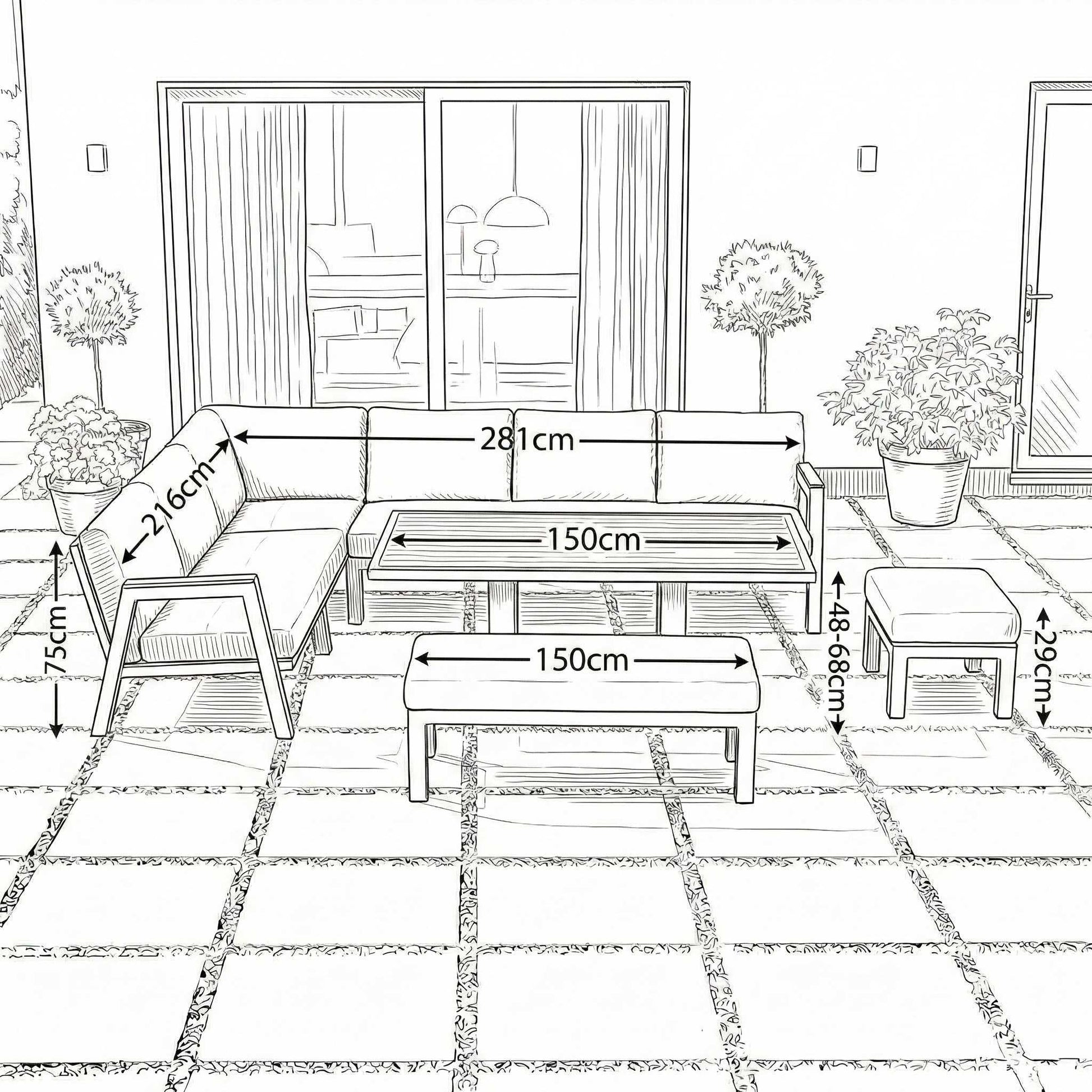 Squared Corner Unit H:75cm W:80cm D:81cm