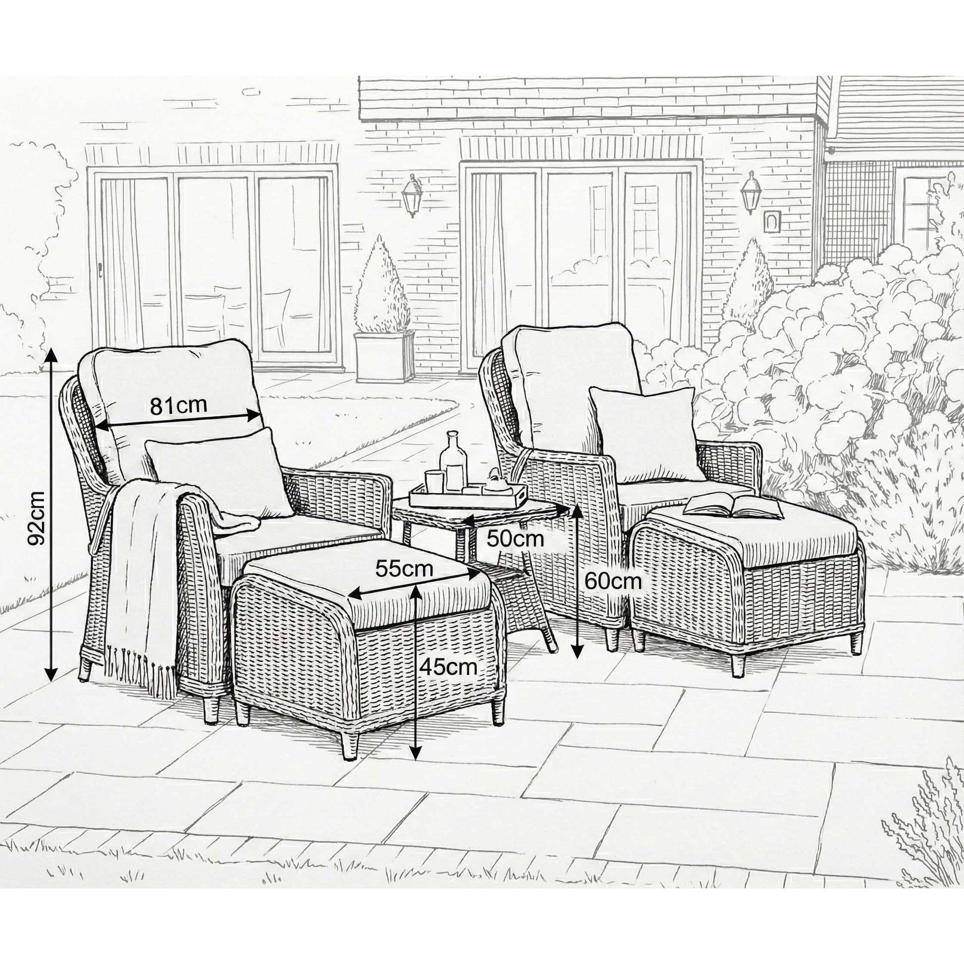 Nova - Ivy 5pc Reclining Lounging Set with Square Side Table