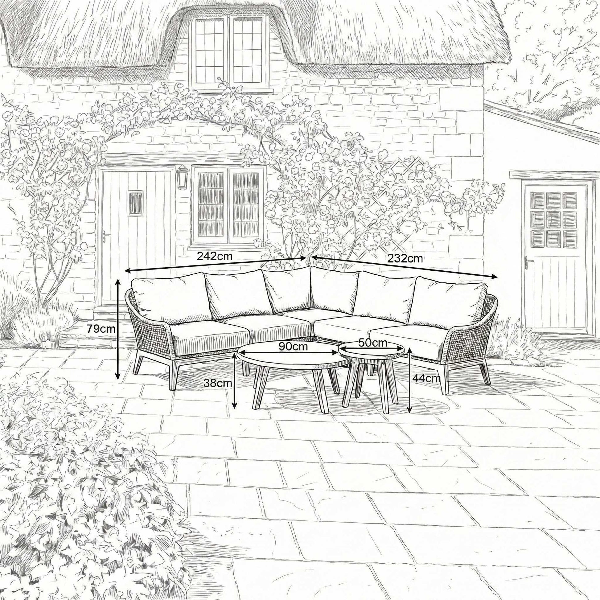 Nova - Summer Corner Sofa Lounging Set with Round Coffee Table & Side Table