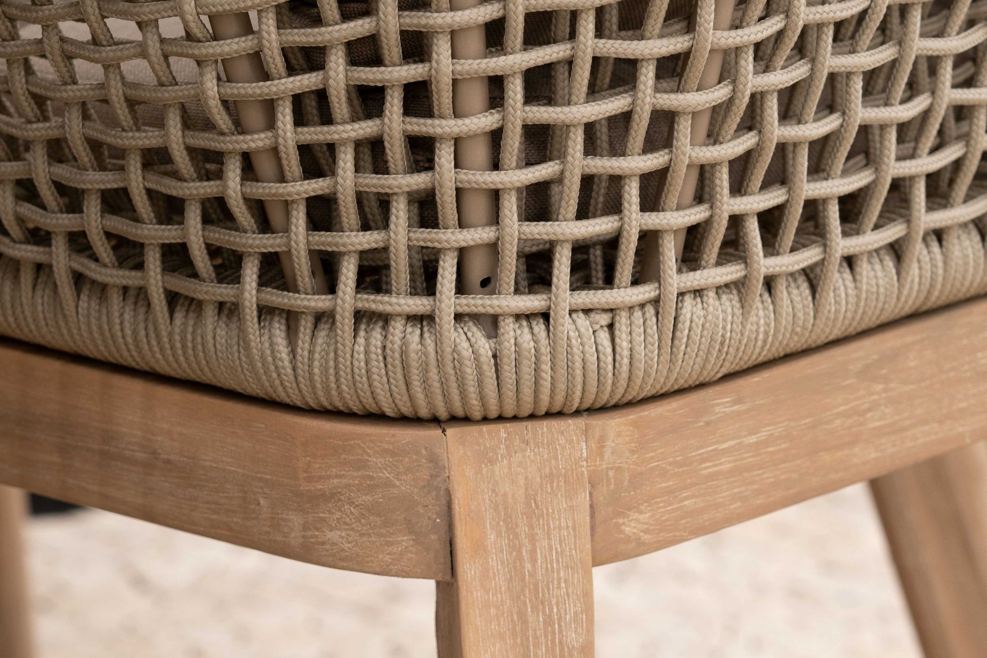 Bring elegance and comfort to your outdoor space with the stunning Summer Collection. This beautifully designed set features hand-woven crosshatch rope, creating a sophisticated and unique look that effortlessly enhances your garden's style. Designed with relaxation in mind, the Summer Collection includes high-specification olefin cushions, offering exceptional comfort for outdoor seating. The generously sized seats ensure a luxurious lounging experience, making it perfect for entertaining or unwinding. The polycrete tabletop adds a modern, low-maintenance touch with a rust-free design, while the incorporation of acacia wood provides a warm, natural aesthetic. Together, these materials create a harmonious blend of timeless beauty. Finished in a delightful cappuccino and almond colour palette, the Summer Collection exudes a soft, inviting charm, making it an elegant centrepiece for any outdoor setting.